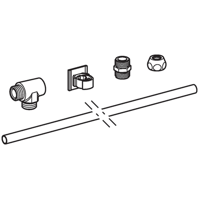 Geberit Wasseranschluss zu Tuma WC-Aufsatz.Zum Anschließen von Geberit AquaClean Tuma WC-Aufsätzen an Aufputz-Spülkästen mit Wasseranschluss links T-Stück mit Außengewinde G 3/8", verchromt Kupferrohr gerade, 0.5 m, verchromt Anschlussmaterial Befestigungsmaterial