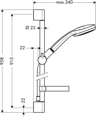 Hansgrohe Brausegarnitur Croma 100 Vario Stange 90 cm Handbrause 4-Strahlarten, 27771