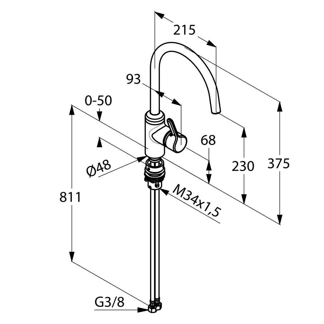 Kludi BINGO STAR Spültisch-Bajonett-Einhandmischer, aus Messing Oberfläche chrom, mit schwenkbarem Rohrauslauf, mit geschlossenem Betätigungselement, Ausladung Betätigungselement in mm 93, mit PCA Cache Luft-sprudler M 16,5 x I, Geräuschverhalten DIN 4109 Gruppe I, ohne Prüfzeichen, Durchflussklasse Z (max. 0, 14 l/s), Ausladung in mm 215, mit Schaft mutter, mit flexiblen Armaturen Anschlus sdruckschläuchen G 3/8 mit DVGW (W543/KT W-A W270) KIWA / CSTB/ WRAS Zulassung Lä nge in mm 811, Auslaufhöhe in mm 230, mi t Keramik Kartusche mit Heißwasserbegren zung D 35 mm, Betätigungselement aus Met all, h ges. in mm 375, Bohrlochdurchmess er D 35 mm, für Unterfenster Montage: verbleibende Sockelhöhe in mm 25, für geschlossene Trinkwassererwärmer, Durchflusswassererwärmer, PN 10