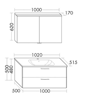 Trinnity One Möbelset 1020 mm weiß hochglanz
