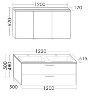 Trinnity One Badezimmer-Doppelwaschtisch-Möbelset 1220 mm in anthrazit hochglanz – Sehr funktionell und stilvoll.