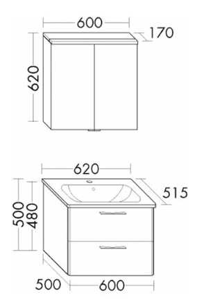 Trinnity One Möbelset 620 mm weiß hochglanz