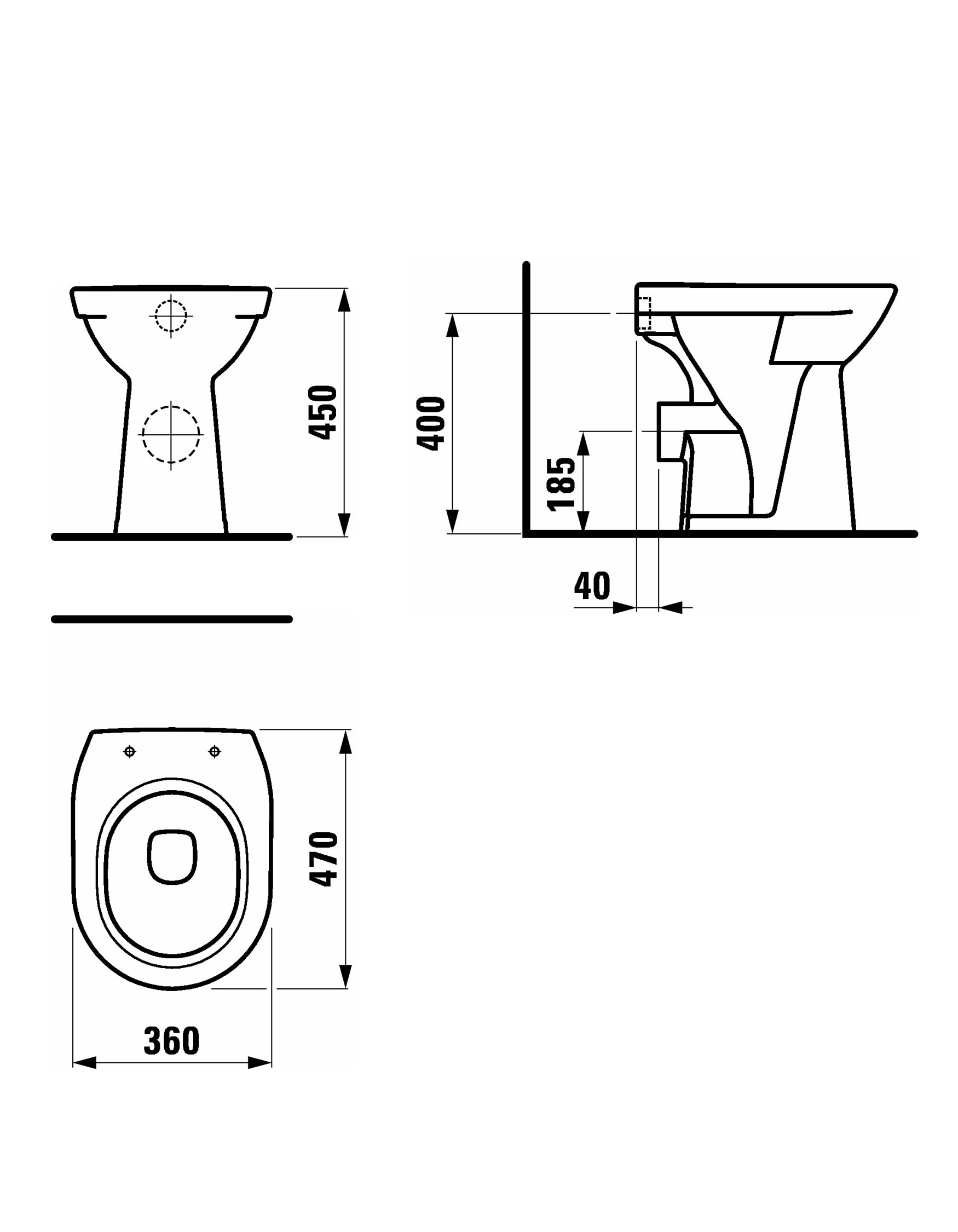 Laufen 2595.5 Stand-Tiefspül-WC PRO weiss Abgang waagrecht erhöht