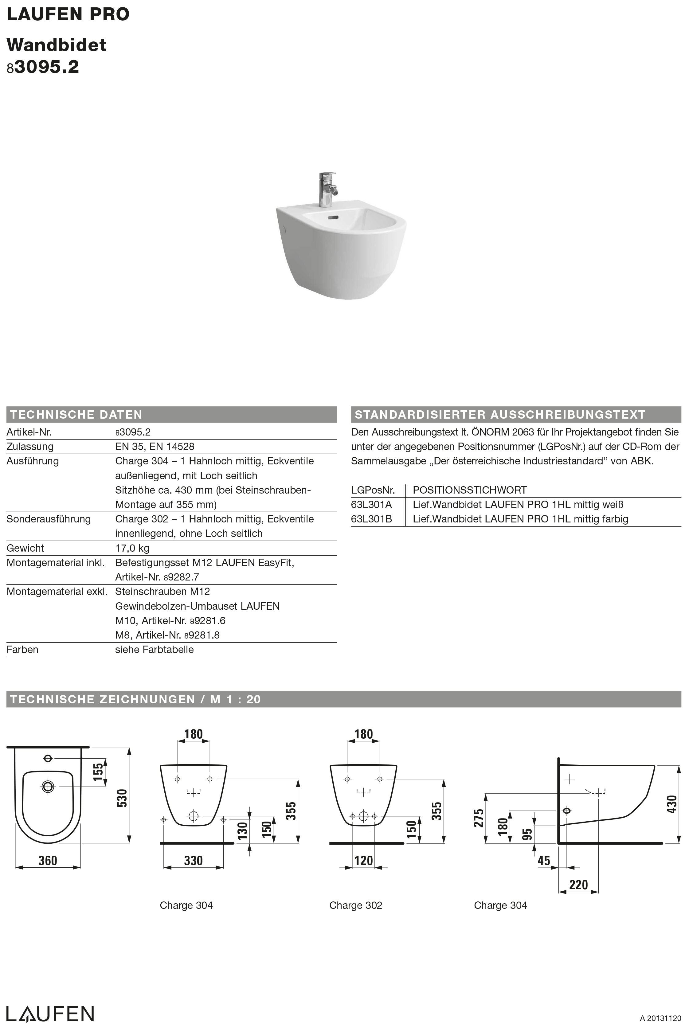 Downloads "Laufen 3095.2 Wandbidet Pro neu weiß Charge 302"